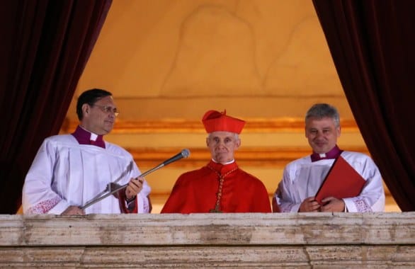 Il Cardinale Protodiacono si reca nella loggia centrale della Basilica di San Pietro da dove pronuncia l'Habemus papam; subito dopo esce il Pontefice, preceduto dalla croce astile, impartendo la benedizione Urbi et Orbi.